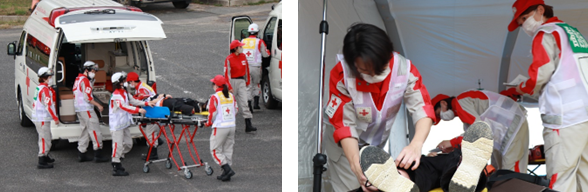 当院救護班は一次トリアージ・安定化処置・後方搬送等を担当し、消防等他の機関と連携し、有意義な訓練を実施しました。