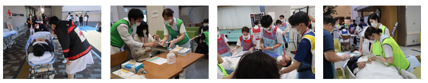 また、新設部門では模擬患者が来院し、トリアージ後に各エリアへ搬送・治療を行うといった流れや処置について、マニュアルに沿って確認しながら活動しました。