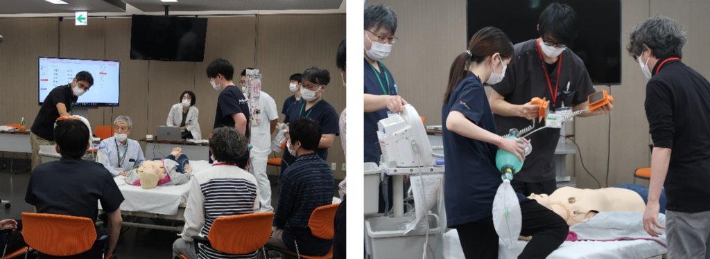 当日は、シミュレーターを用いて、様々なケースへの初期対応として、気管挿管や除細動などの手技を学ぶことができ、大変有意義な講習会となりました。