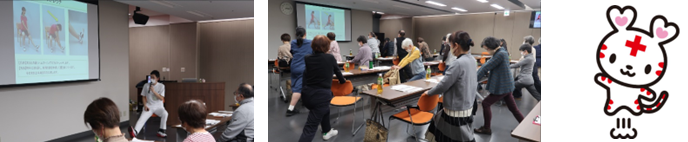 次に、当院のリハビリテーション課の職員による「健康をあきらめない」という題での講演があり、簡単なストレッチについて、皆さん真剣に取り組まれていました。